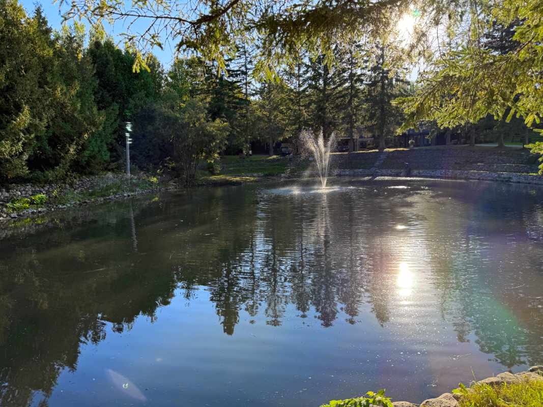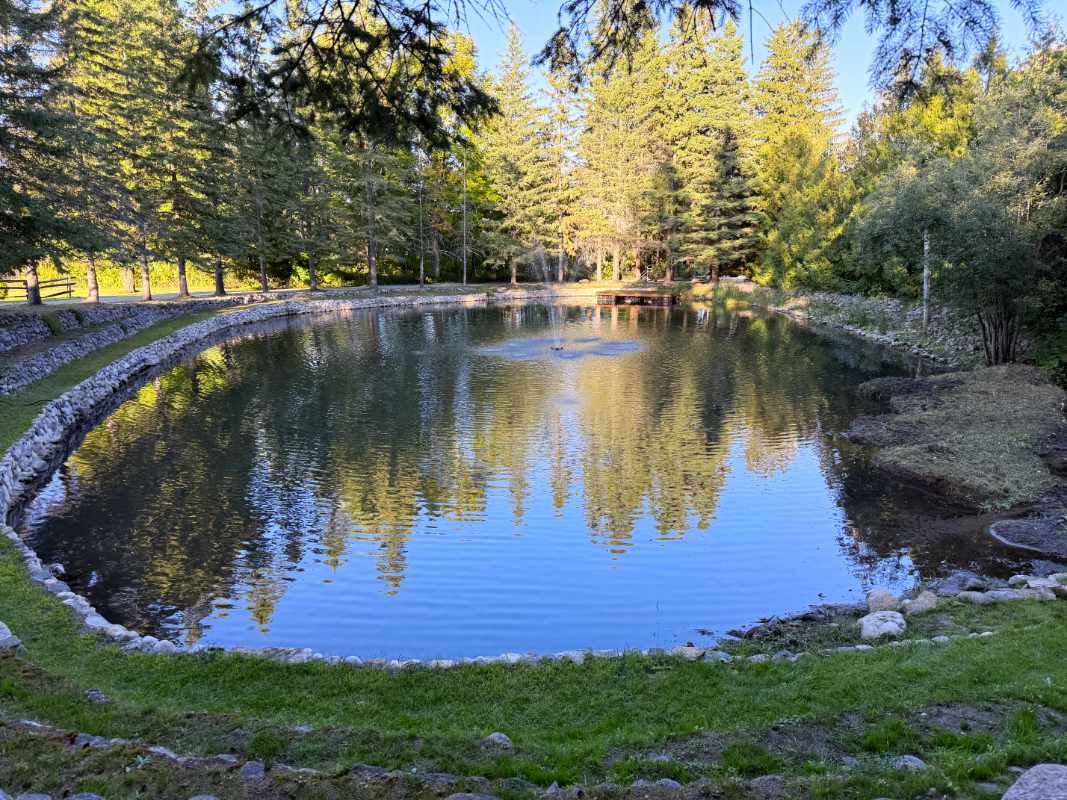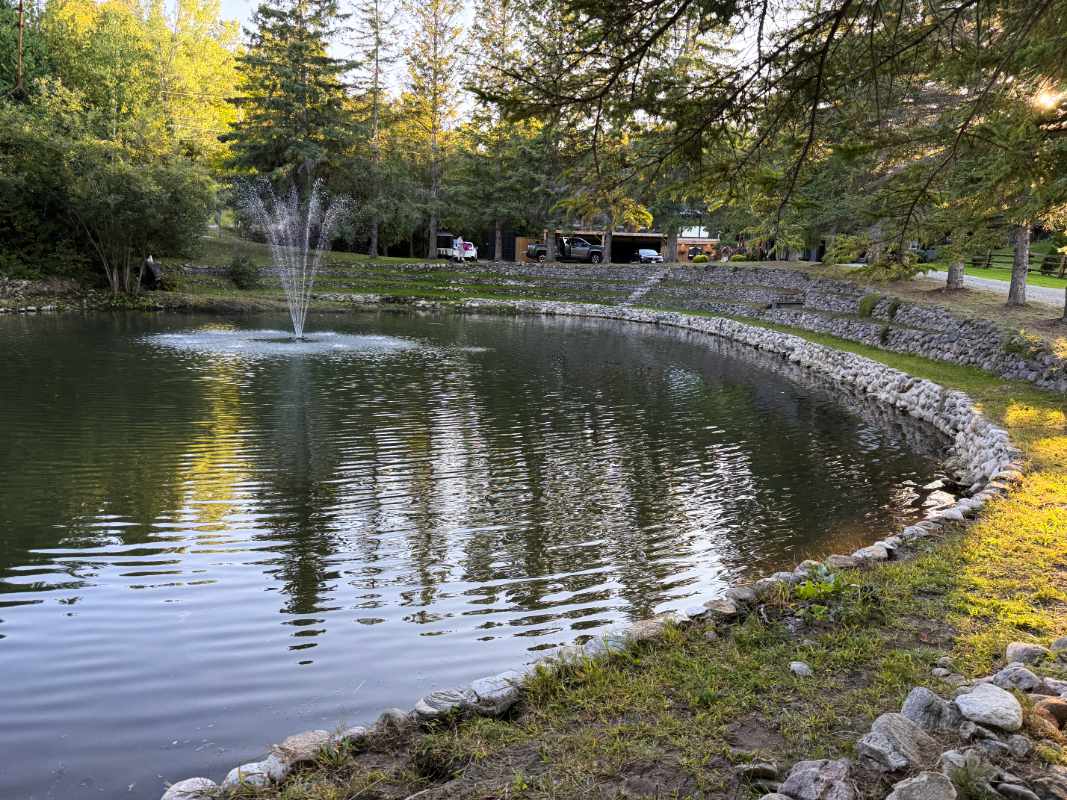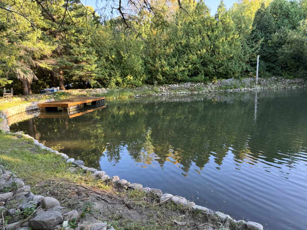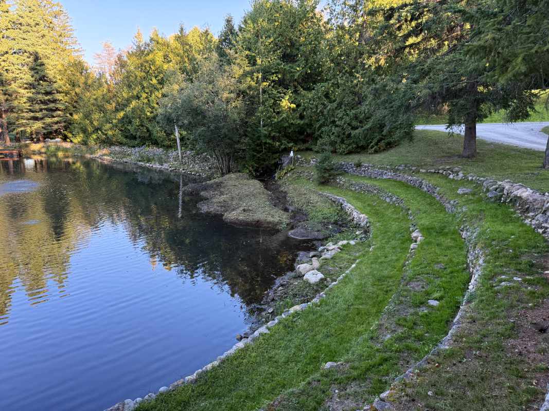 This striking pond is the focal point of this property located in Fesserton. The beautiful tiered steps with granite fieldstone boulder walls and steps create a truly unique look and make accessing the pond much easier on what would otherwise be a very steep slope.