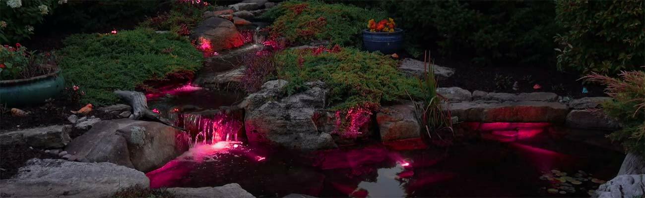 The Aquascape 2-Watt Color-Changing Waterfall Light provides impressive, energy-efficient lighting options for ponds, waterfalls, fountains, and landscapes, adding beauty and elegance by bringing them to life at night. The low-profile, compact design makes this fixture ideal for tucking into small places, including waterfalls and behind cascading water. Control your lights from anywhere with your smartphone or tablet using the Aquascape Smart Control App, providing a variety of lighting functions, such as color selection, cycle, dimming, color themes, and dynamic scheduling (adequate wireless coverage is required – 2.4 GHz supported).